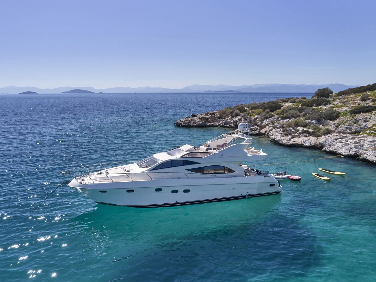 Cruise the Aegean in style aboard the Azimut 74 Solar, a splendid motor yacht available for charter. This meticulously renovated 2003 yacht, upgraded in 2021, beckons from its base in Athens. With a length of 74 feet, 4 beautifully appointed cabins accommodating up to 10 guests, and a thoughtful layout featuring 4 bathrooms, this yacht promises an exceptional blend of elegance, comfort, and performance for an unforgettable charter experience.